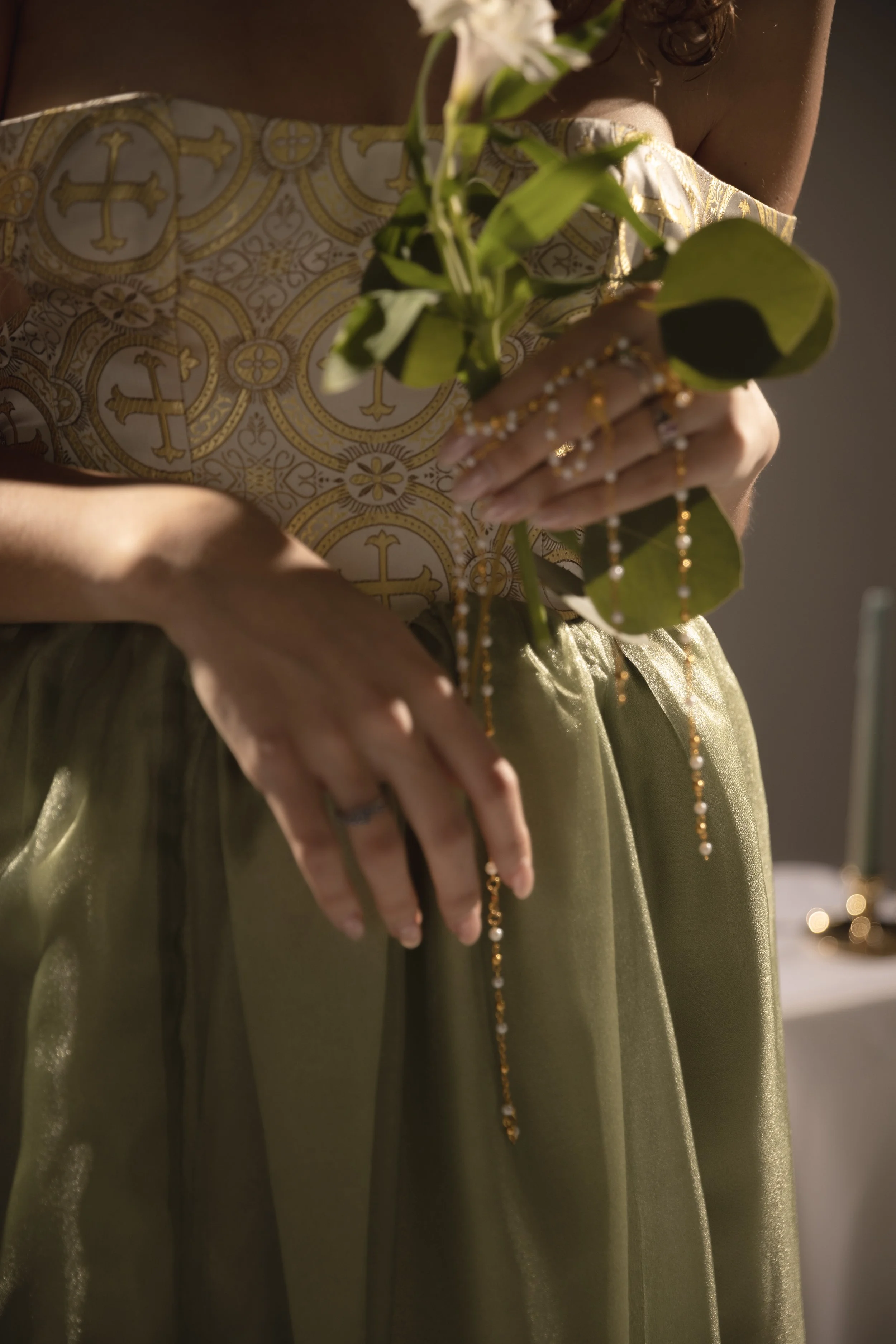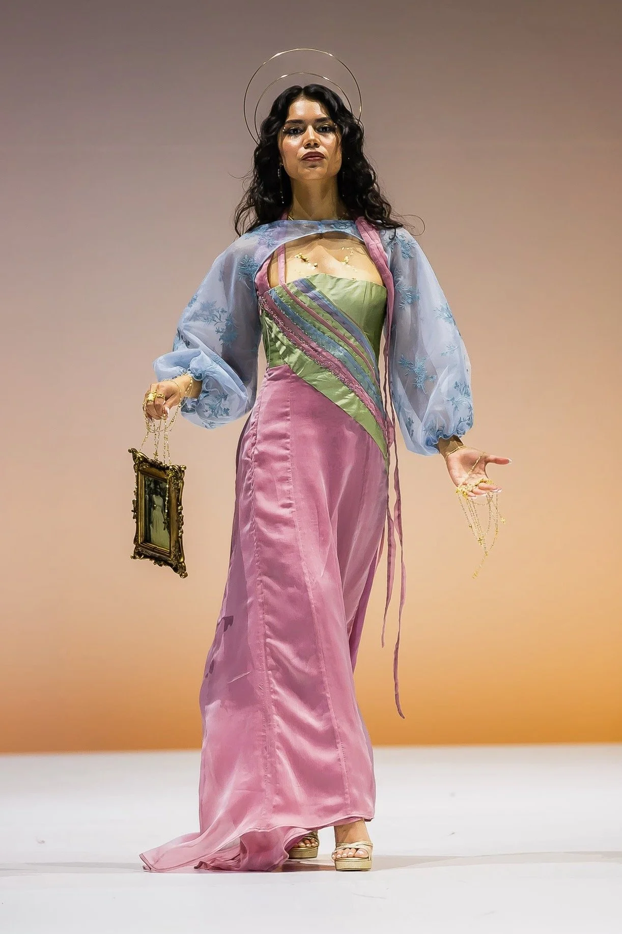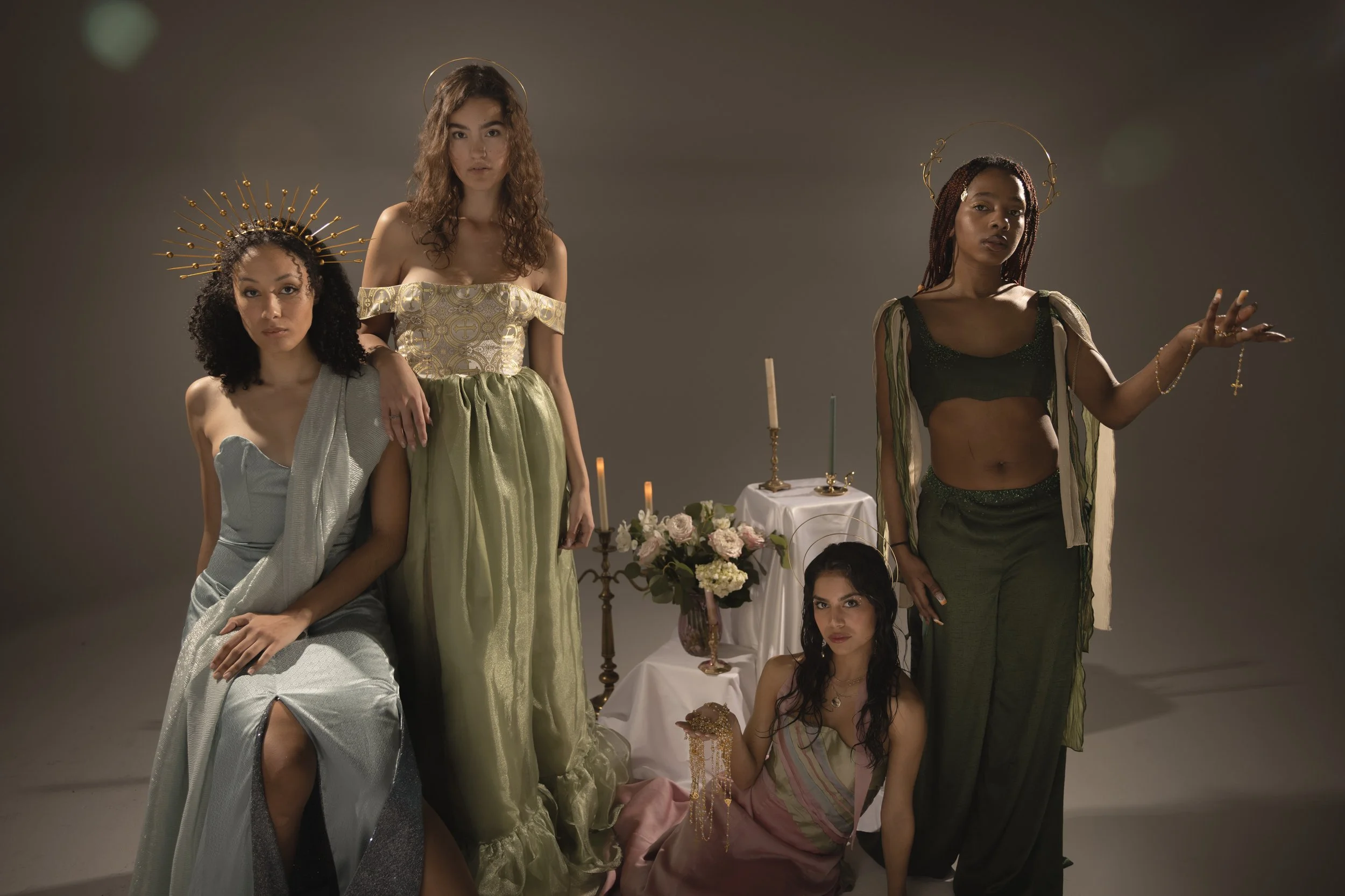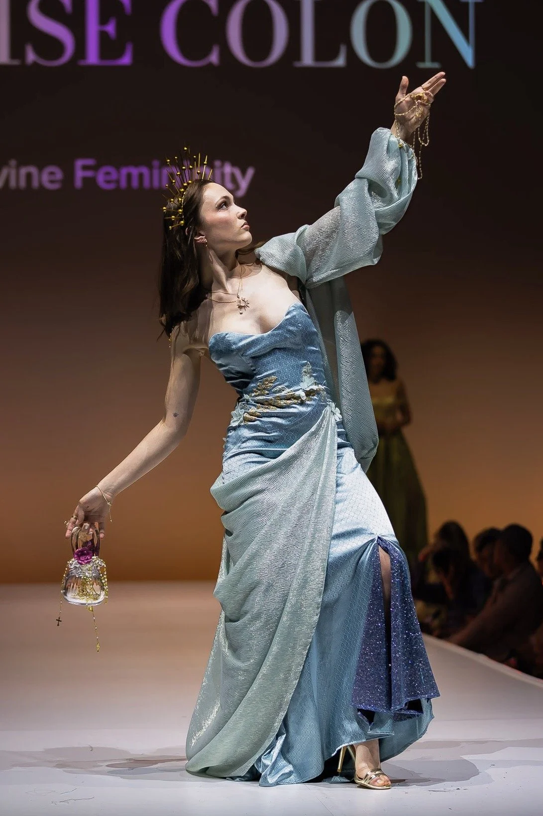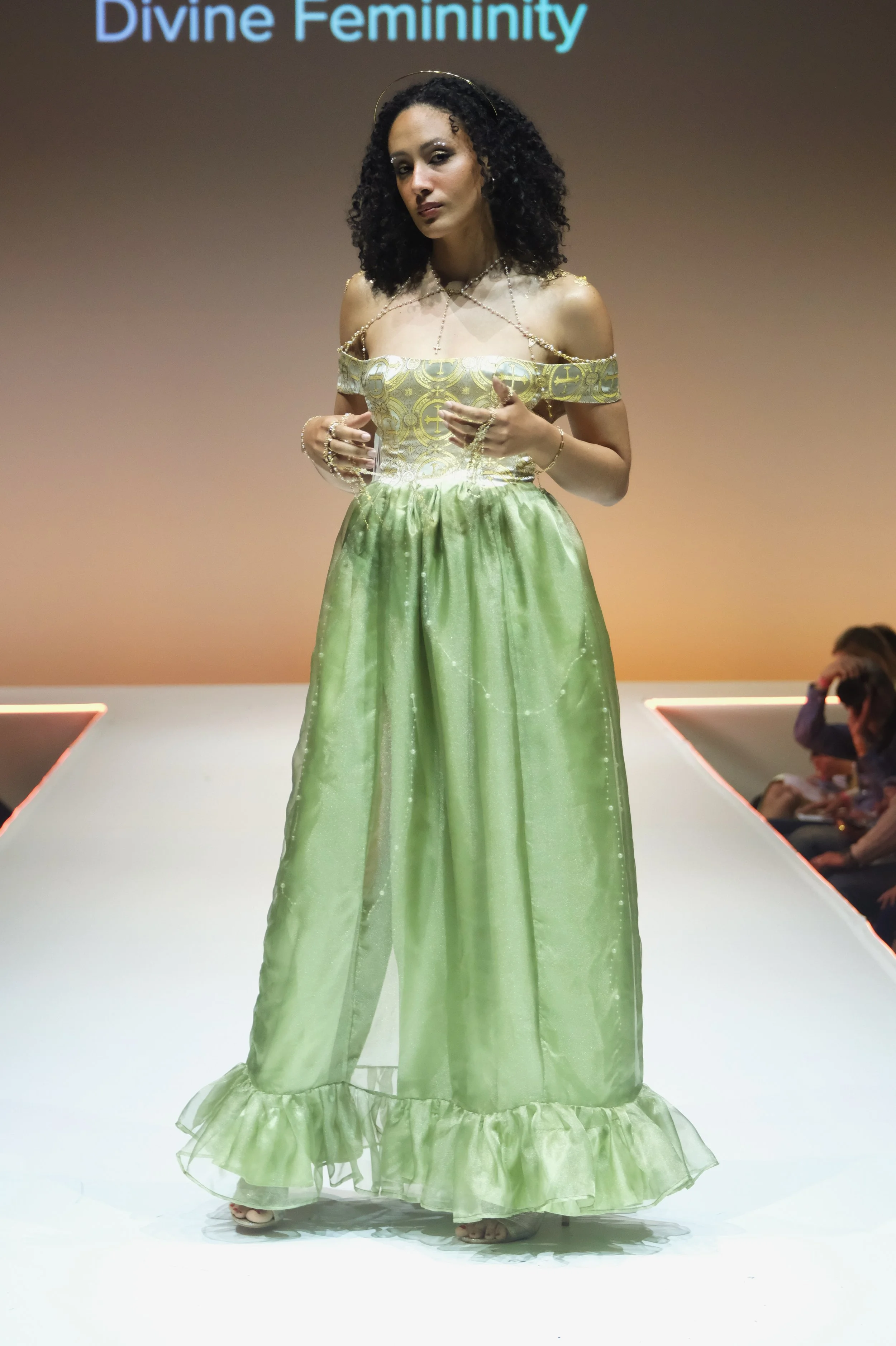 Influenced by my upbringing in a Hispanic Catholic household, where women often struggle for recognition despite being the foundation, my couture collection is a tribute to the empowering female figures in my family. They shaped my perception of femininity with their confidence, empathy, and strength. I weave this narrative in my designs through motifs that represent family ties, Catholicism, and love.