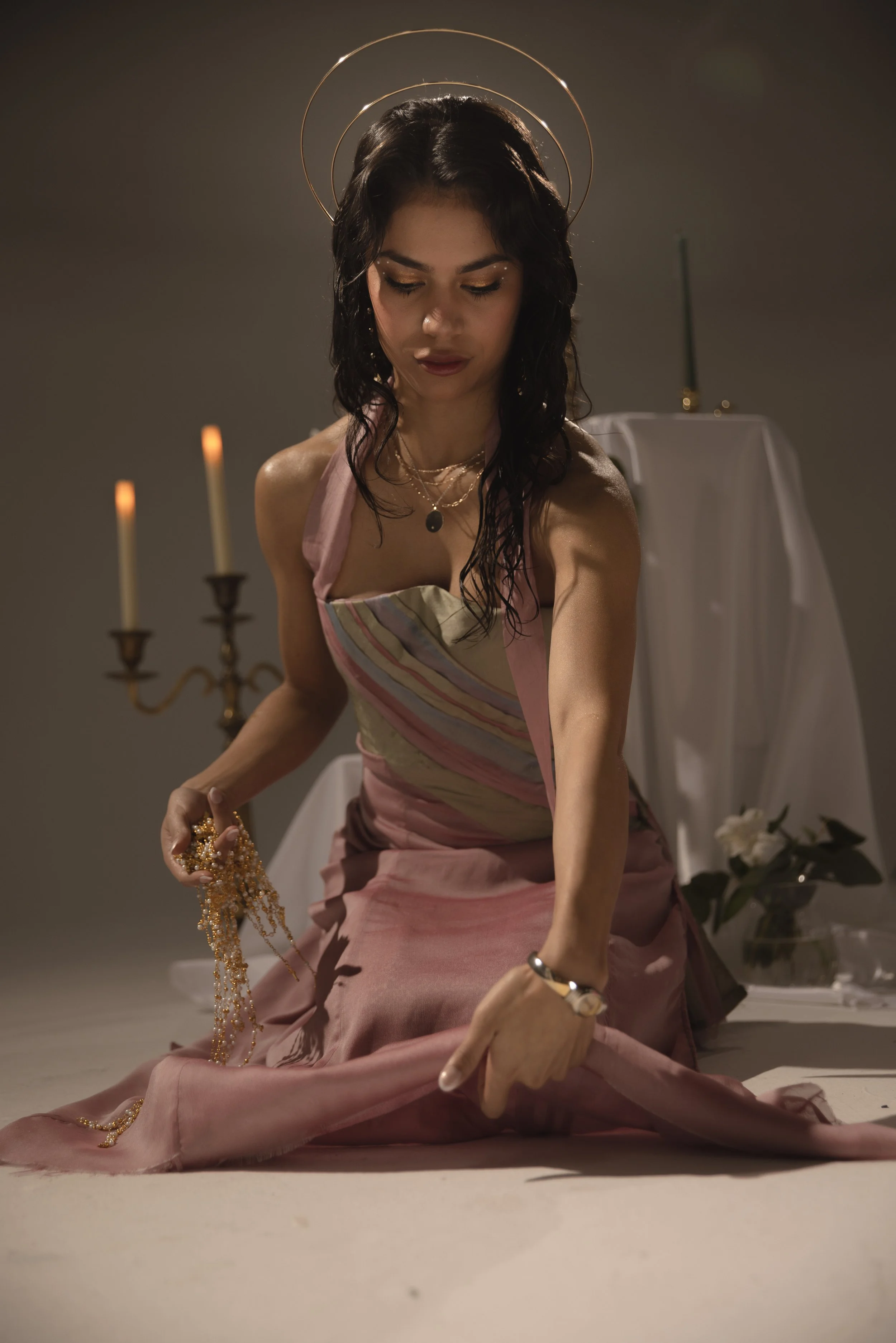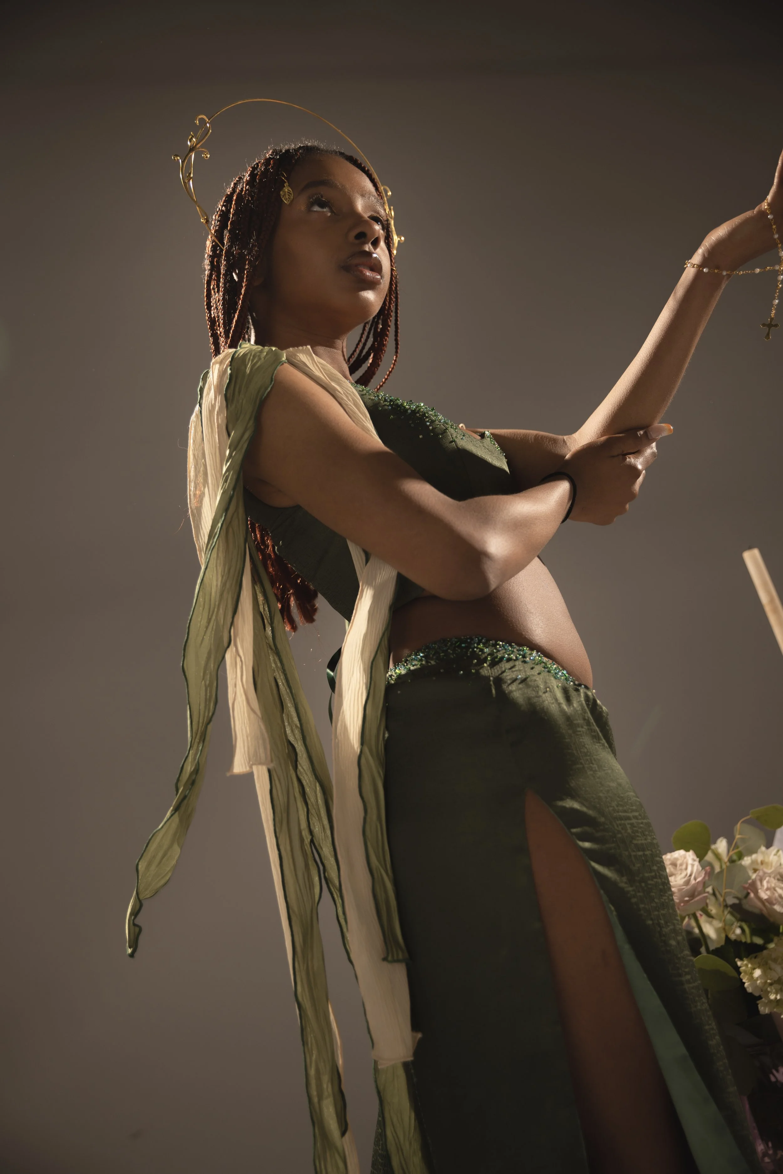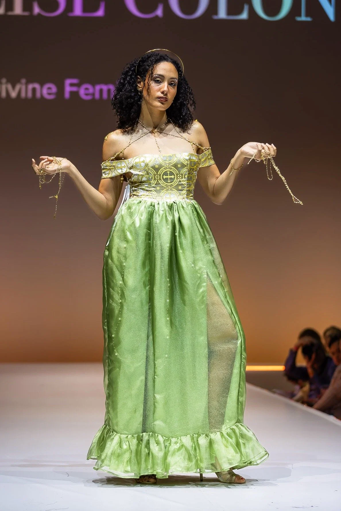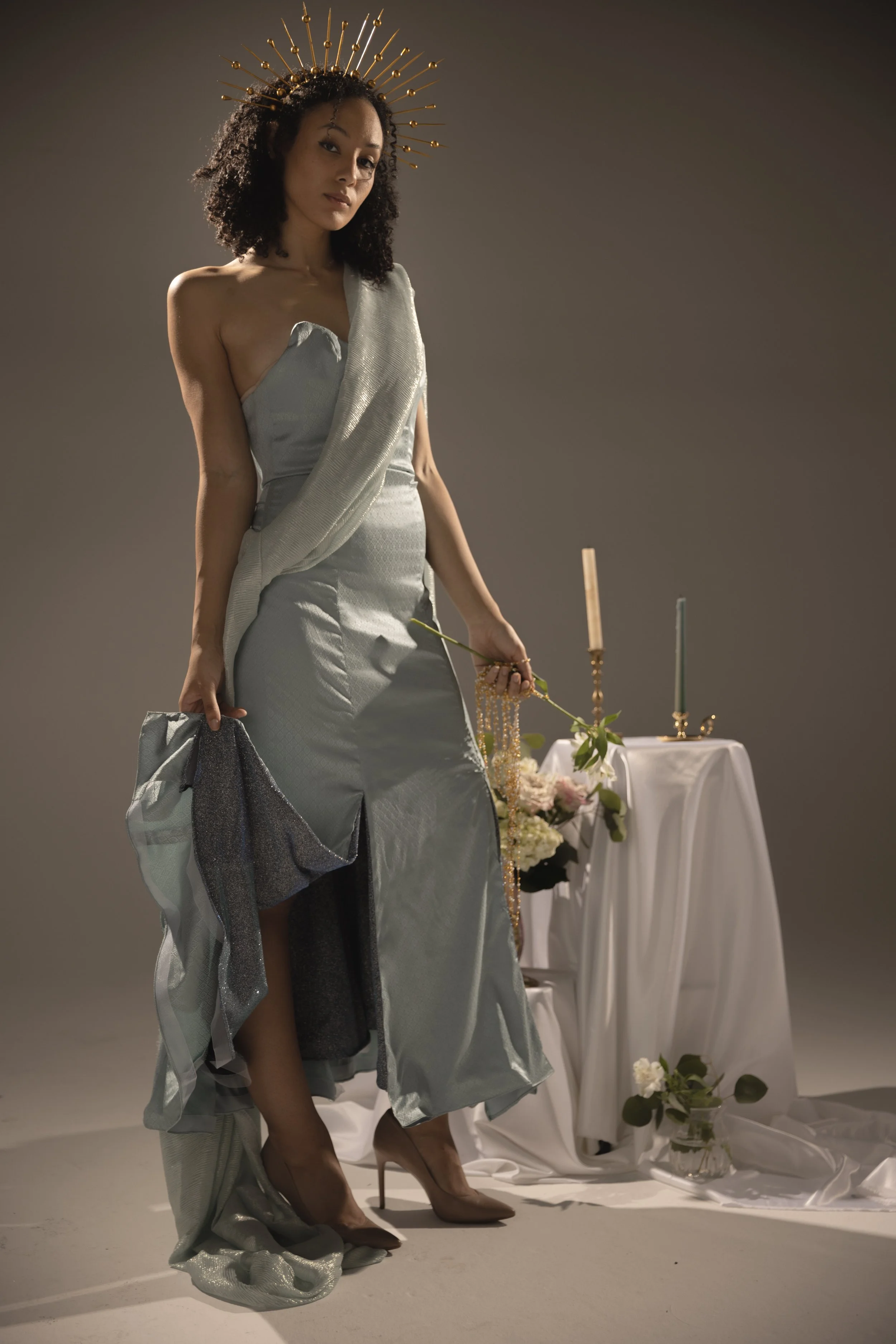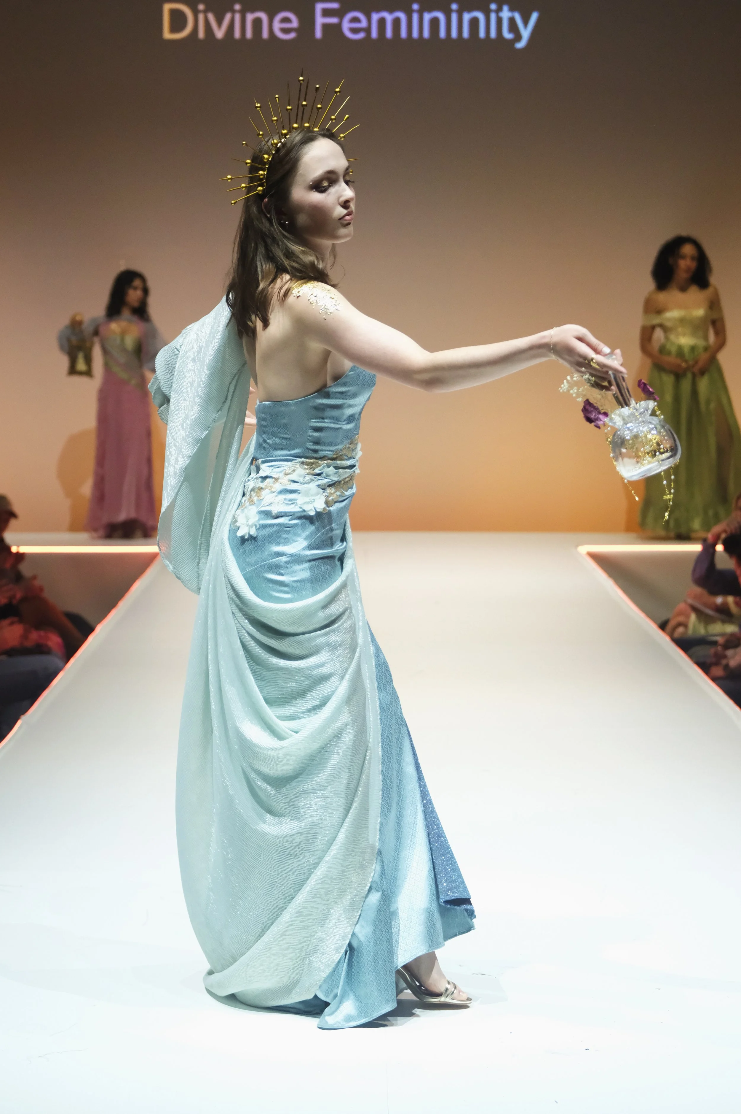 Influenced by my upbringing in a Hispanic Catholic household, where women often struggle for recognition despite being the foundation, my couture collection is a tribute to the empowering female figures in my family. They shaped my perception of femininity with their confidence, empathy, and strength. I weave this narrative in my designs through motifs that represent family ties, Catholicism, and love.